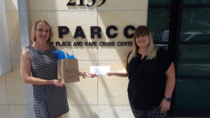 Coral has been a supporter of SPARCC for 20 years, and Cutting Loose Salons have been supporting this local charity for nearly 10 years. This summer, Cutting Loose Salons encouraged guests to donate unused beauty products to the Safe Place and Rape Crisis Center by offering a discount on take home beauty for those who participated. All the products donated go directly to the local shelter for women to use, as most had to leave behind everything to get out of abusive situations. Between both locations, Cutting Loose Salons donated over 500 toiletries to women in need at SPARCC. Inspired by the support of the community, we matched our guests’ product donation with a cash donation.